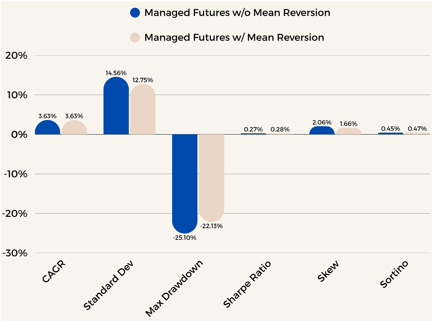 However, you don’t need to take my word for it. Let me show you the impact and benefits of including a Mean Reversion Strategy within our EW Managed Futures Strategy.